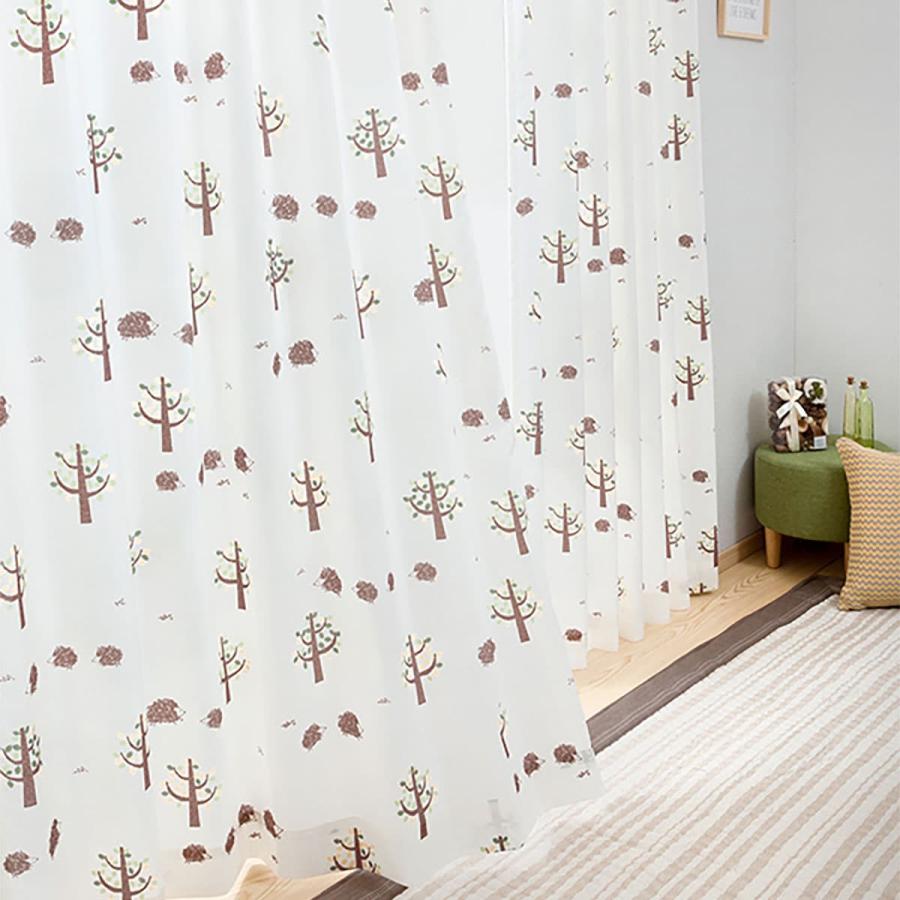 森の中のハリネズミが可愛らしくプリントされたカーテンです。