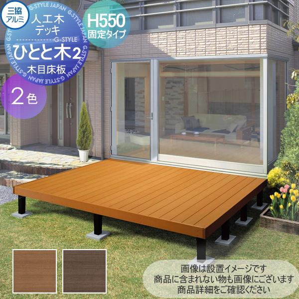 「三協アルミのひとと木2」は、天然木の温もりのある風合い「床板」と、表面を凹凸加工し木目の風合いを重視した「木目床板」の2パターンのウッドデッキを展開しています。